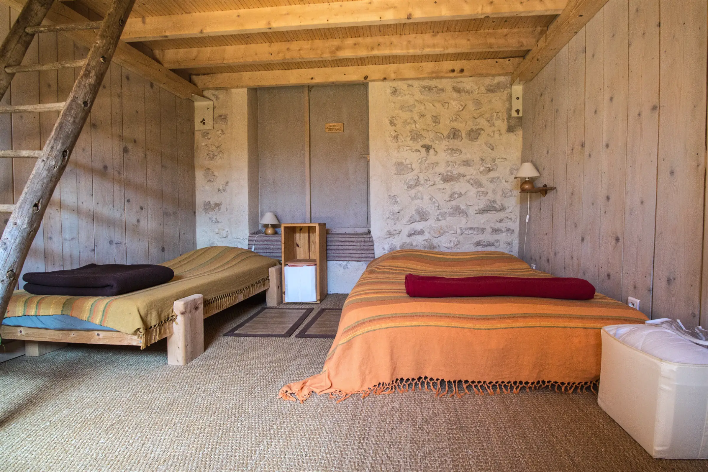 Il y a encore une petite mezzanine au-dessus avec 2 matelas parterre
