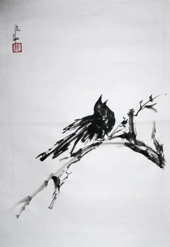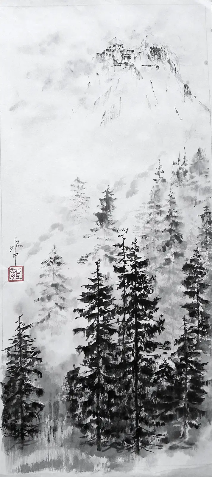 En m’inscrivant dans l’héritage des peintres excentriques de l’école Chan, je privilégie le geste spontané et la simplicité. Il ne s’agit pas de maîtriser rigoureusement  la forme, mais de laisser circuler le souffle, et espérer que chaque peinture soit une trace humble et vivante de ce dialogue entre le ciel, la pierre et l’esprit.