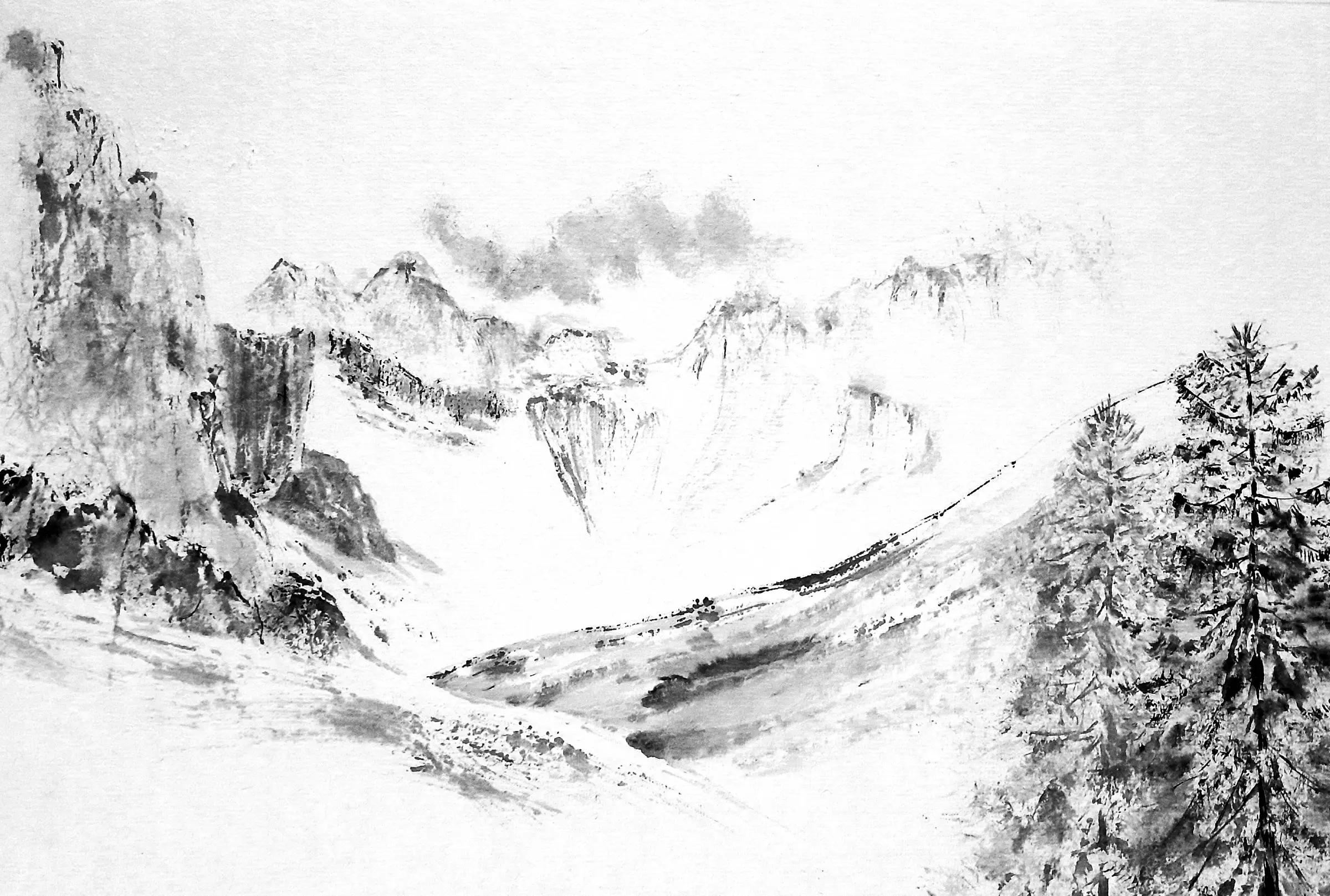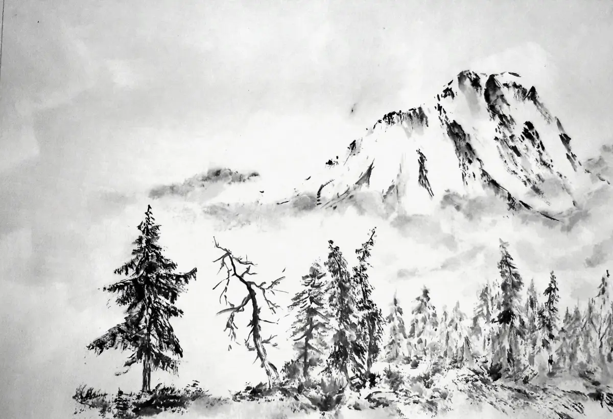Chaque trait est la rencontre avec cette nature sauvage qui m’environne et mon monde intérieur. Je considère cette  pratique comme une quête de l’essence, une traduction sensible du vivant où le paysage devient un état d’âme.