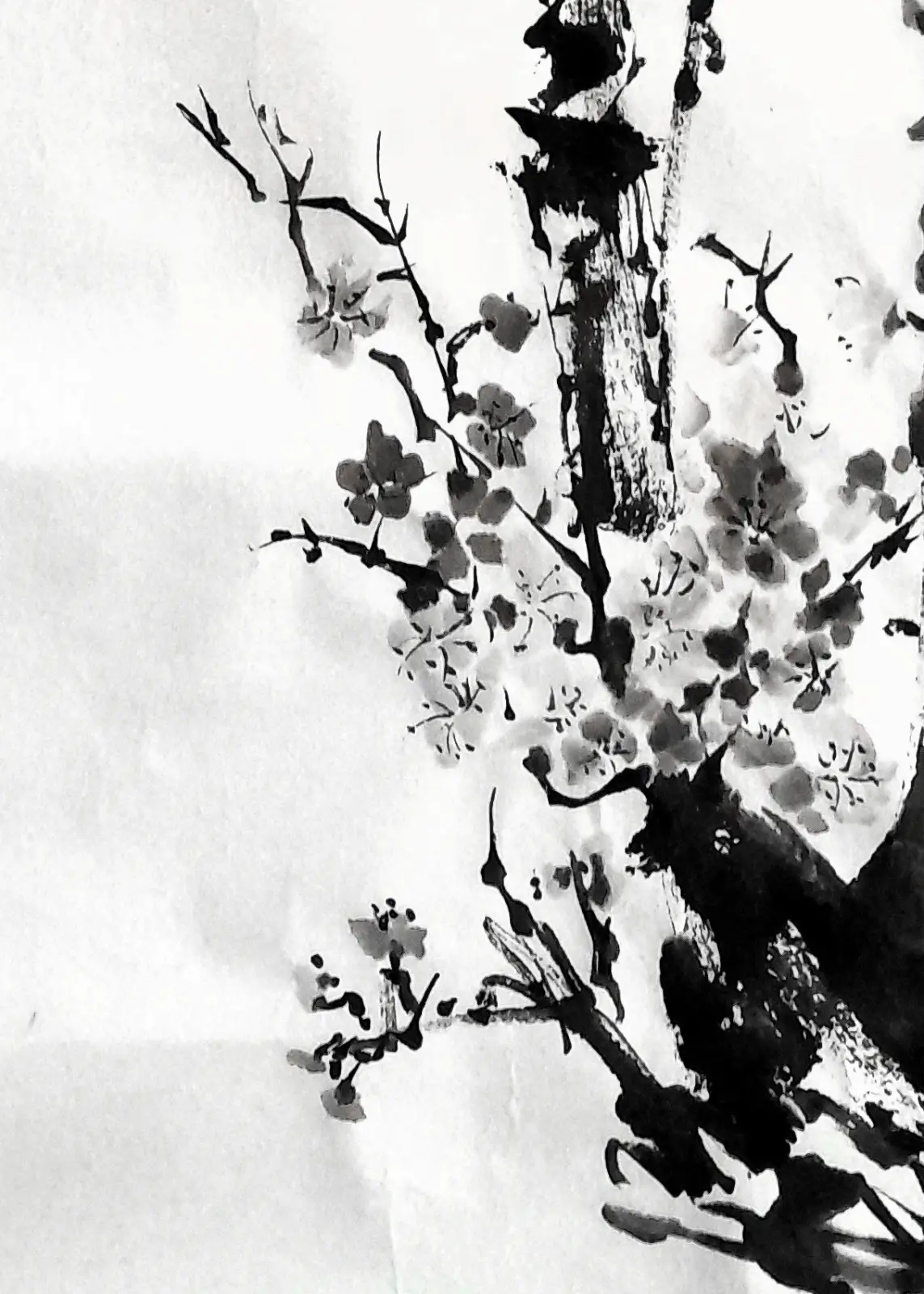 C’est cette discipline qui m’invite aujourd’hui à continuer d’explorer les fondamentaux de cette peinture : les « Quatre Gentilshommes ». À travers le Bambou (la force dans la souplesse), le Prunus (la résilience et l’espoir comme première fleur du printemps), l’Orchidée sauvage (la grâce, l’élégance) et le Chrysanthème (la sérénité), je continue d’apprendre comment quelques traits d’encre peuvent contenir tout un univers. Ces quatre plantes, symboles de vertus morales et de cycles saisonniers, continueront de m’accompagner au gré de mes explorations picturales.